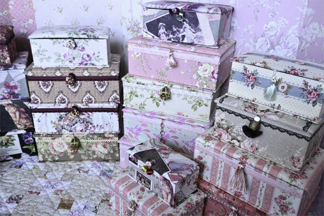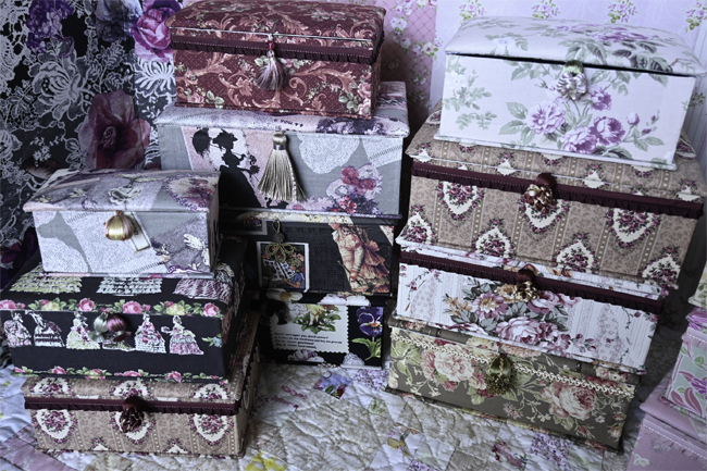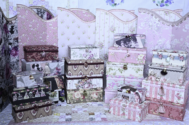 カルトナージュ、パーテーション、キルト、キルトのクッションなど