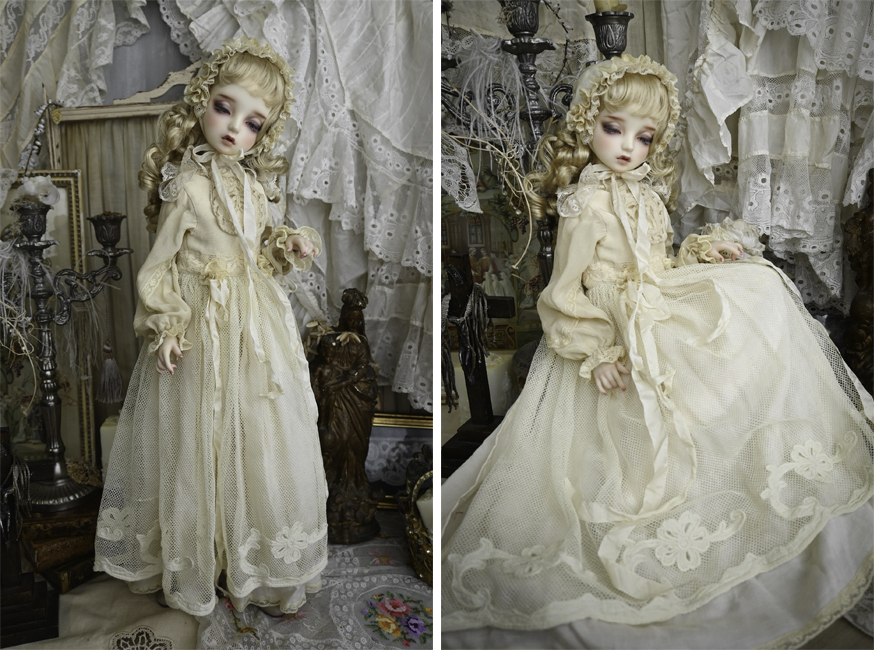 【SD即納 / アンティークレース、アンティーク生地】ワンピース、ボンネット