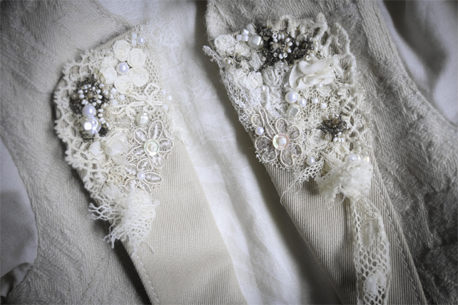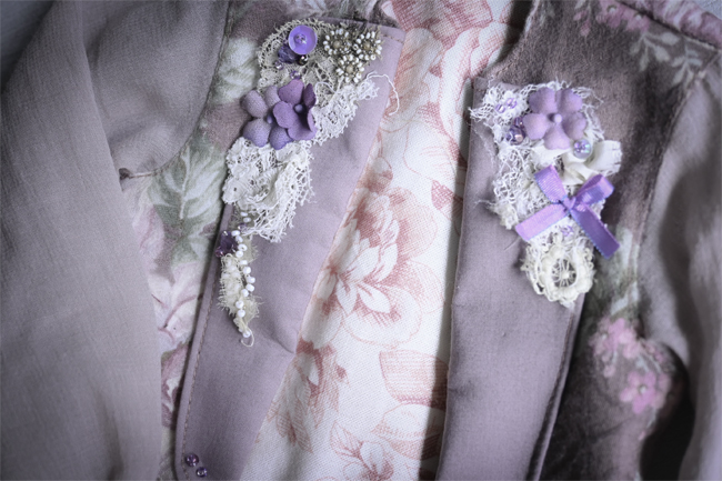 パープル・ダスティピンク・生成り:アンティークレースやアンティークビーズのパーツなどで装飾
